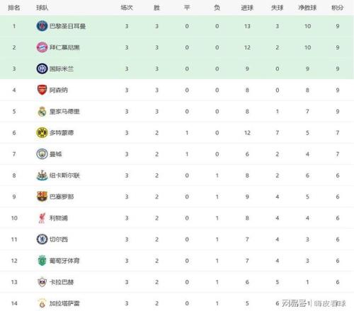 如此看来,全胜的球队中,阿森纳、拜仁慕尼黑和皇家马德里,获得前八名直通16强的机会是很大的,巴黎圣日耳曼和国际米兰想要晋级,难度不小。排名靠后的曼城和多特蒙德,切尔西和巴塞罗那都是晋级的有力争夺者。更靠后,只有5分的热刺,甚至是3分的马德里竞技,如果发挥好的话,也是有机会的。 有些球队擅长前程发力,有些则喜欢后程冲刺,目前排名靠后的球队,谁可以创造奇迹,最终冲进前八名?拜仁慕尼黑和巴黎圣日耳曼,利物浦和皇家马德里,本轮相遇,谁能笑到最后?  |