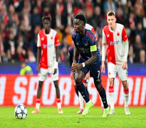 萨卡亲自操刀,皮球钻入死角,这是萨卡连续4个欧冠客场破门,创造枪手纪录。