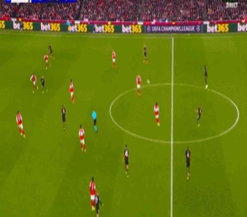 基米希突然送出犀利的过顶长传,格纳布里插上第一时间横传,卡尔门前包抄铲射破门,1-1!