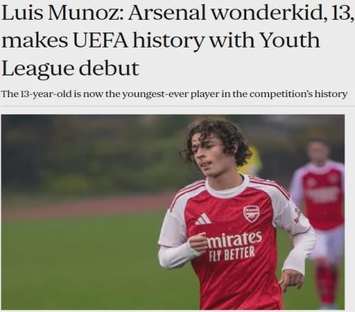 伦敦晚旗报消息,阿森纳小将路易斯-穆尼奥斯成为了青年欧冠历史上最年轻的出场球员,这名年仅13岁的神童(下个月才14岁)在枪手u19对阵拜仁的比赛中替补登场,创造了历史,最终阿森纳青年队4-2取胜。 这个穆尼奥斯前几天还在IG上致敬了埃泽,搞半天才13岁啊……