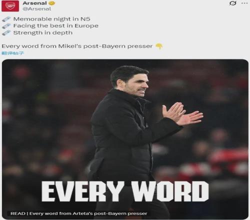 阿尔特塔出席了赛后新闻发布会,我们来看看阿森纳主帅的发言。 关于缩小和欧洲顶级强队的差距: 我们目前在欧冠的表现确实非常稳定,但这只是开始。我们对今天看到的一切感到满意,球场里创造出的气氛和我们传达出的活力以及比赛质量都让人赞叹,我们必须保持这点,因为这还在早期阶段。不幸的是,我们必须每三天就做到这点,当然这也是美妙之处。 今晚的胜利对你们来说有多重要? 拜仁是一支顶级球队,我认为他们可能20或者21场不败了吧,你们也看到这些记录了,所以你们也知道比赛的难度。这场比赛我们做到了,这很好,这展示出了球队能做到什么,而且我也对今天获得机会的球员很满意,他们的出场带来了巨大的影响,这正是我们需要的。 你能谈谈阿森纳阵容深度的优势吗? 我认为我很开心,但当我看向拜仁的替补席时,情况是一样的。我看到他们替补出场的球员,也是那些能改变比赛的球员。 我们显然提高了阵容深度,不仅是球员的质量,还有他们的心态,而这给我们带来了很大的不同。 特罗萨德什么情况了? 我们还不知道,他说他感觉到了什么,我们不想冒险。 鉴于你们四线争冠赛程密集,你们是否有尽快确保出线资格的目标? 显然,在任何赛事中都是越快达成这个目标越好。但我们也知道其中的难度,球队前面还有非常困难的比赛等着我们,不过我们确实处在很好的位置上。 你是如何在莫斯克拉和因卡皮耶之间做出决定的?莫斯克拉今天表现也很好: 是的,我认为莫斯克拉表现很好,因卡皮耶也一样。我们必须清楚,因卡皮耶是从厄瓜多尔赶回来的,他踢了两场全场。然后又踢了德比战,这是因卡皮耶在英超的第一次首发,那场比赛之后他非常疲劳,好消息是我们还有莫斯克拉,他今天和萨利巴都表现很好。 两年前你们在四分之一决赛输球,你认为这支球队和当时那支球队有何不同? 我们不一样了,他们也不一样了,而且这是赛事的不同阶段。其实那年我们出局时两回合差距也不大,但那就是历史。希望我们学到了教训,变得更强大了,并且在未来展示出这点。 以上是新闻发布会的大部分内容。 因为我也没看直播,所以就不叨叨太多了。 这场比赛我认为非常重要,显然连胜热刺和拜仁,带给士气上的鼓舞是巨大的,尤其是拜仁,复仇的感觉和喜悦是从内到外的! 但阿尔特塔很清醒,第一阶段的对阵和淘汰赛是不一样的,上赛季阿森纳第一阶段也赢过巴黎,结果淘汰赛就败下阵来,我不是说今年淘汰赛就打不过拜仁,而是说现在还不是翘尾巴的时候。 至于特罗萨德,目前还没有关于他身体情况的权威报道,等等消息吧,虽然小马丁复出了,但还是希望特罗萨德没事,现在球队的化学反应非常好! 周末踢切尔西也是恶战,蓝军刚刚完胜巴萨,也是士气大涨!但阿森纳如今谁也不怕,安心备战!