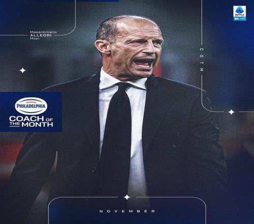 北京时间12月12日,意甲官方宣布,AC米兰主帅阿莱格里当选联赛11月最佳球员。