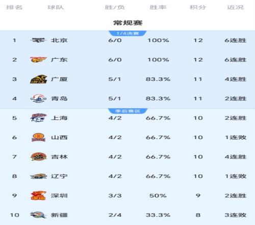 北京时间12月26日晚上,CBA常规赛第六轮结束了多场比赛,上演悲喜一夜,北京男篮、广东男篮继续连胜,已经扩大到6场,继续稳居积分榜前二。此外,这一夜也是产生三场冷门比赛,包括宁波男篮主客场双杀浙江男篮,同曦男篮惨败送天津男篮首胜,福建男篮战胜广州男篮。