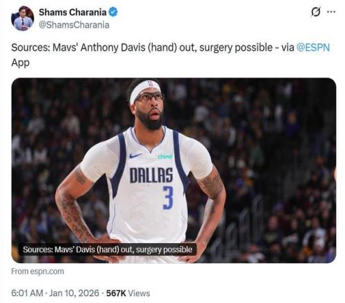 名记Shams后续在与Tim MacMahon的联合报道中也指出这一点,表示浓眉哥这一次突如其来的伤病让其交易前景变得更加复杂。 按照目前的状况来看,无论是否接受手术治疗,浓眉哥都将无法在2月5日交易截止日前痊愈回归,这一消息可能会让一切有关他的交易讨论全部停止。 在浓眉哥受伤之前,独行侠已经与数支球队有过交易讨论,更是与猛龙和老鹰两支球队有过数轮严肃的交易讨论。